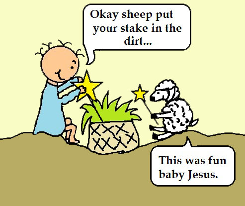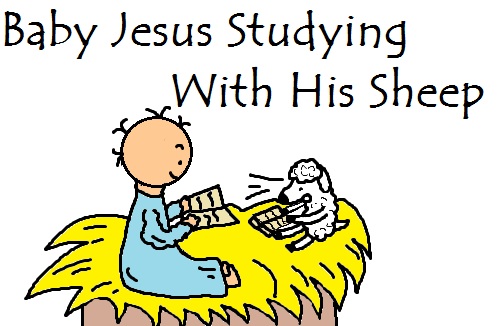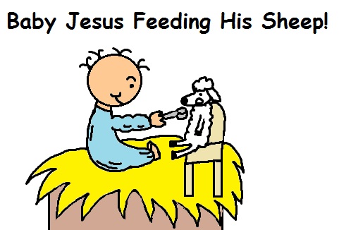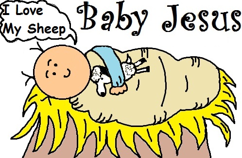 Baby Jesus and His Sheep Making Plant Stakes Clipart
